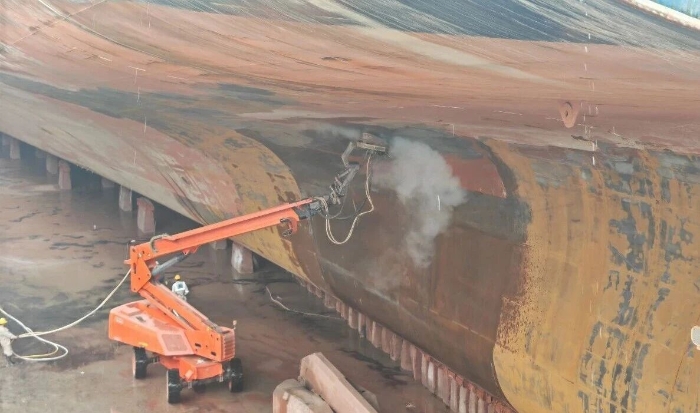 痛點一:效率,人工除銹速度慢,嚴重制約船塢周轉效率。